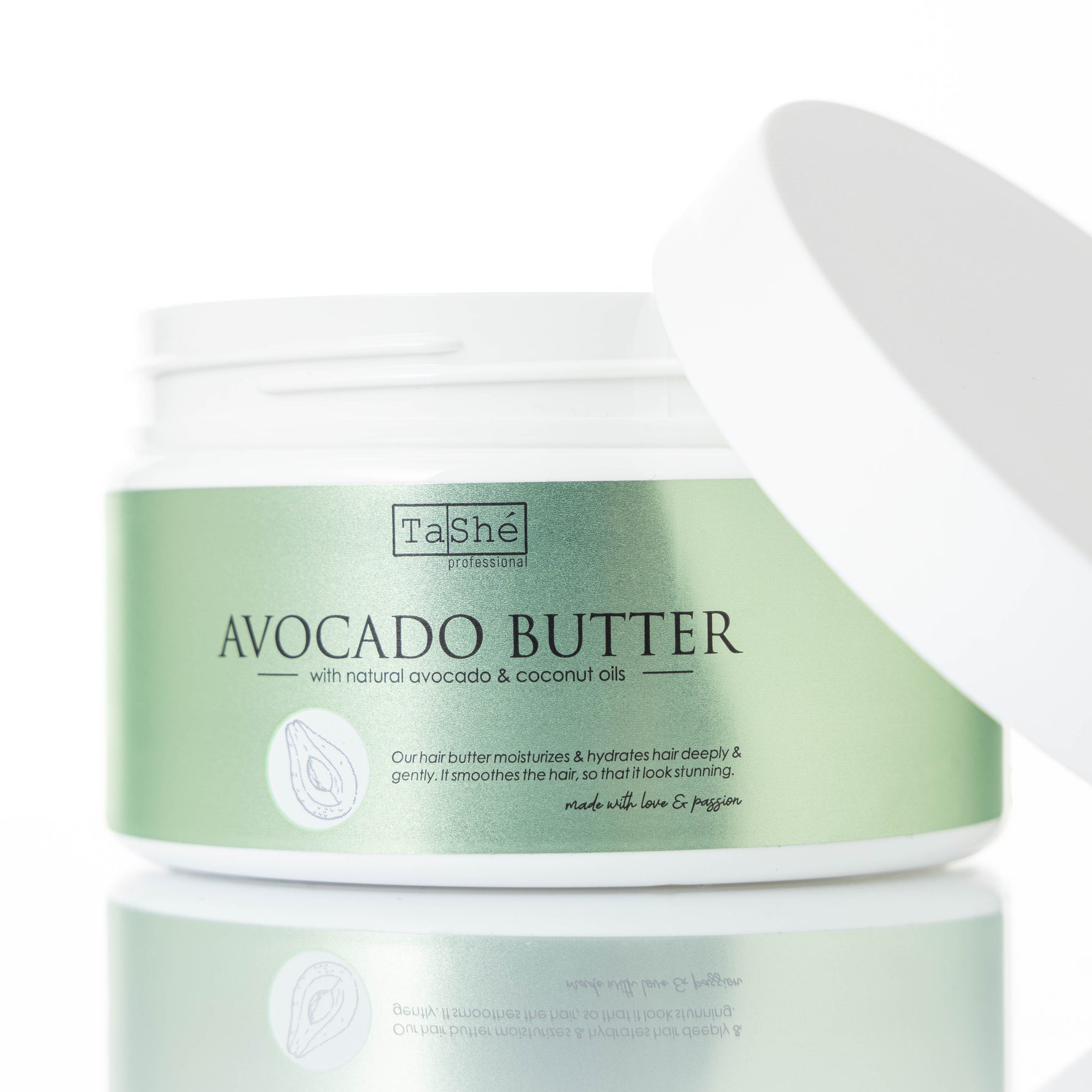 Butterul pentru păr cu avocado Avocado Hair Butter Tashe Professional este fabricat din ingrediente și uleiuri naturale.